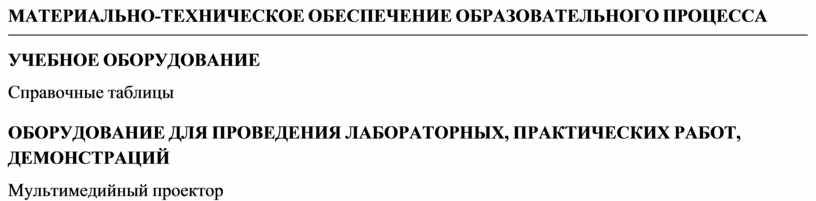 ОБОРУДОВАНИЕ ДЛЯ ПРОВЕДЕНИЯ ЛАБОРАТОРНЫХ, ПРАКТИЧЕСКИХ РАБОТ, ДЕМОНСТРАЦИЙ