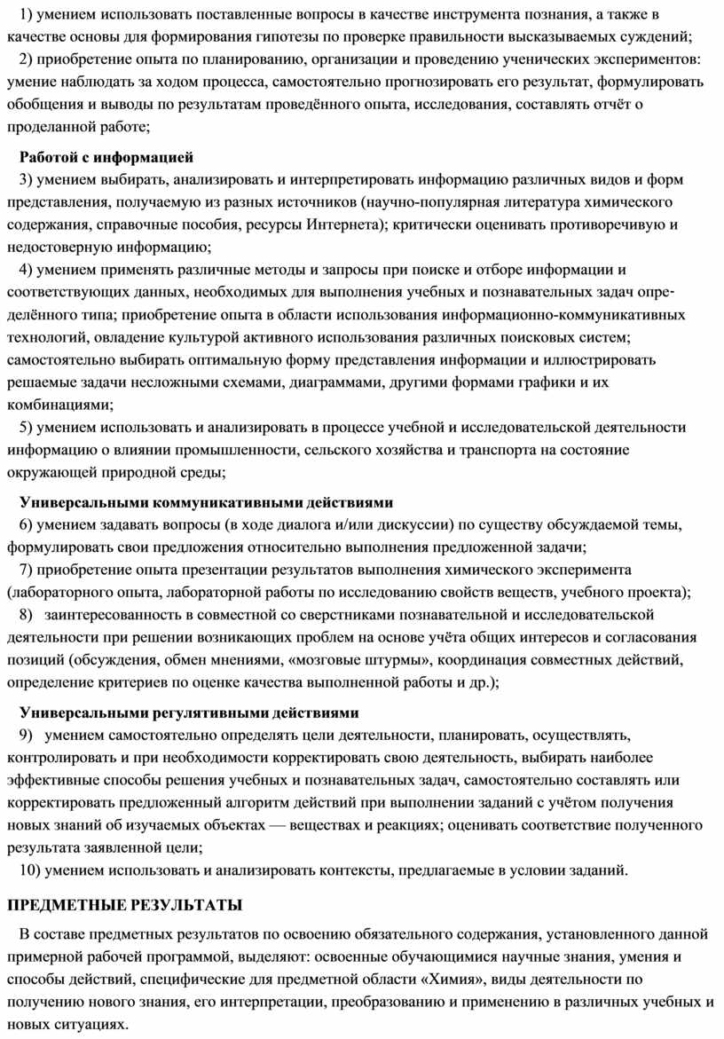 2) представления о социальных нормах и правилах межличностных отношений в коллективе, коммуникативной компетентности в общественно полезной, учебно-исследовательской, творческой и других видах деятельности; готовности к разнообразной совместной деятельности при выполнении учебных, познавательных задач, выполнении химических экспериментов, создании учебных проектов, стремления к взаимопониманию и взаимопомощи в процессе этой учебной деятельности; готовности оценивать своё поведение и поступки своих товарищей с позиции нравственных и правовых норм с учётом осознания последствий поступков;