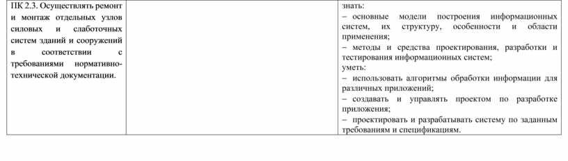ПК 2.3. Осуществлять ремонт и монтаж отдельных узлов силовых и слаботочных систем зданий и сооружений в соответствии с требованиями нормативно-технической документации. |