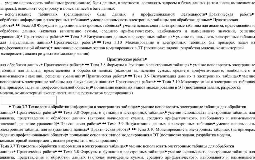- умение создавать структурированные текстовые документы с использованием возможностей современных программных средств |