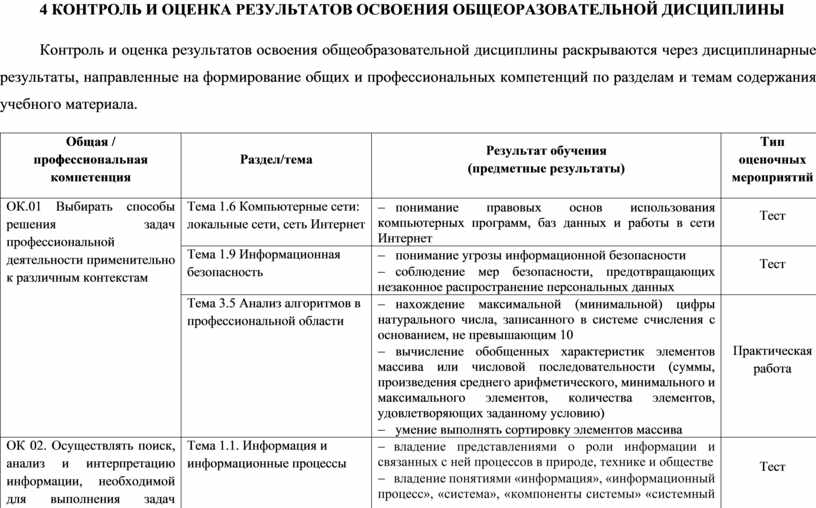 4 КОНТРОЛЬ И ОЦЕНКА РЕЗУЛЬТАТОВ ОСВОЕНИЯ ОБЩЕОРАЗОВАТЕЛЬНОЙ ДИСЦИПЛИНЫ