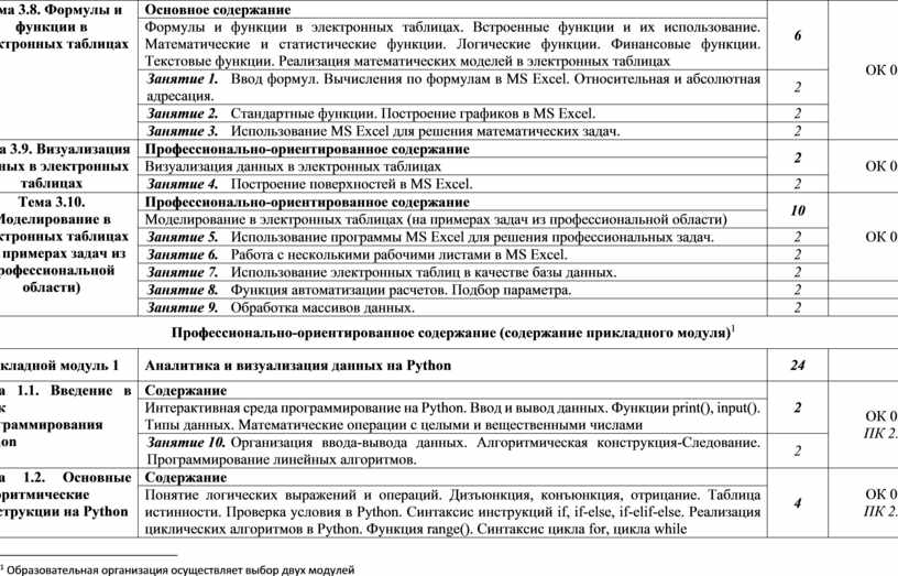 Тема 3.10 Моделирование в электронных таблицах (на примерах задач из профессиональной области) |