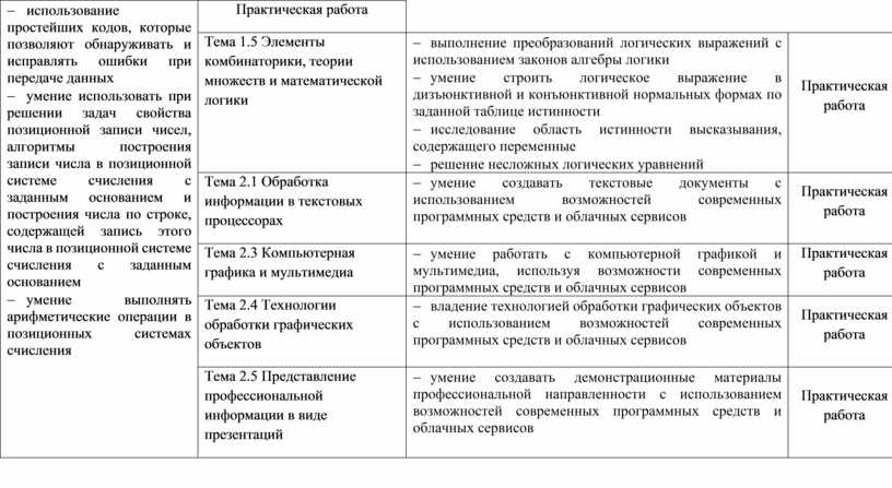 - умение работать с компьютерной графикой и мультимедиа, используя возможности современных программных средств и облачных сервисов |
