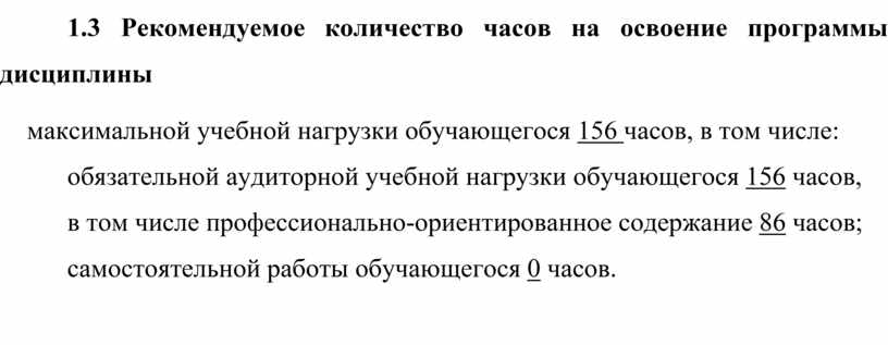 1.3 Рекомендуемое количество часов на освоение программы дисциплины