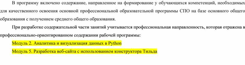 При разработке содержательной части занятий учитывается профессиональная направленность, которая отражена в профессионально-ориентированном содержании рабочей программы: