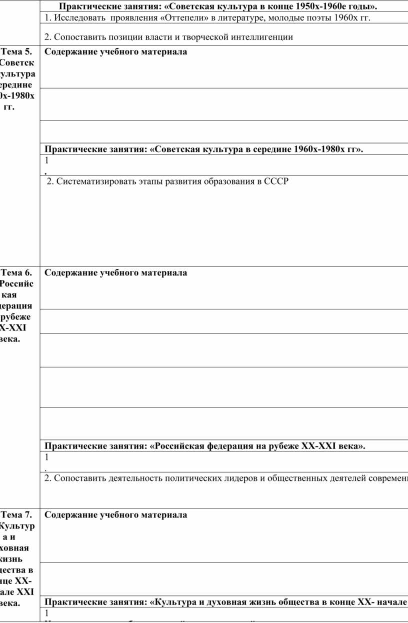 Практические занятия: «Культура и духовная жизнь общества в конце ХХ- начале ХХI века». |