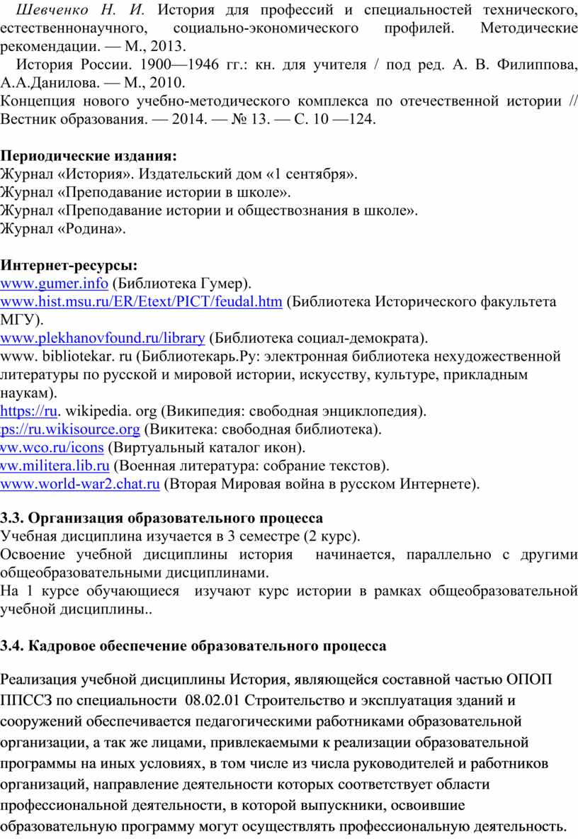 Шевченко Н. И. История для профессий и специальностей технического, естественнонаучного, социально-экономического профилей. Методические рекомендации. — М., 2013.