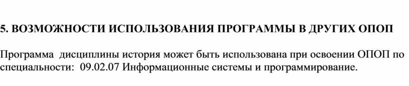 5. ВОЗМОЖНОСТИ ИСПОЛЬЗОВАНИЯ ПРОГРАММЫ В ДРУГИХ ОПОП