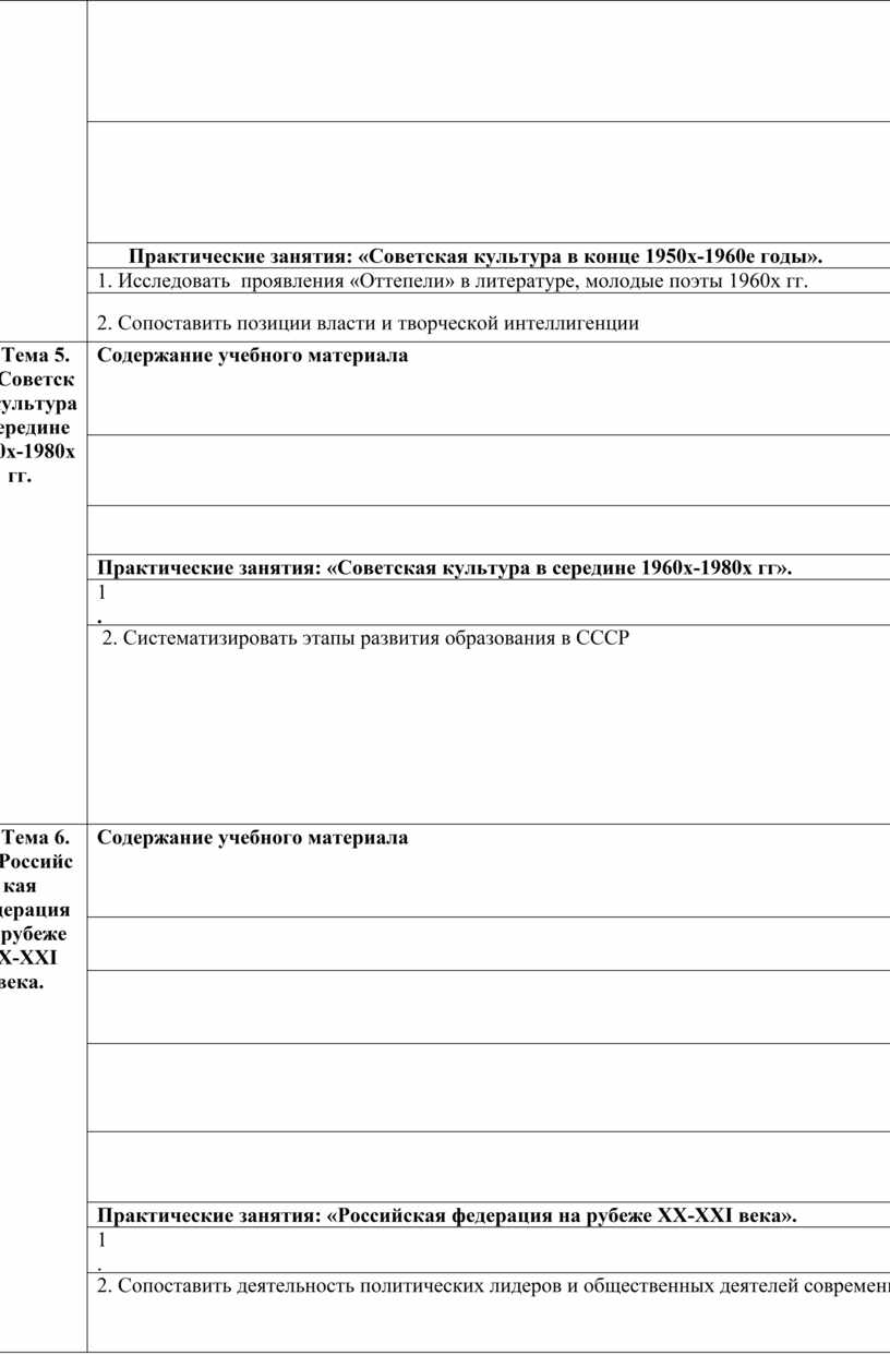 Практические занятия: «Культура и духовная жизнь общества в конце ХХ- начале ХХI века». |