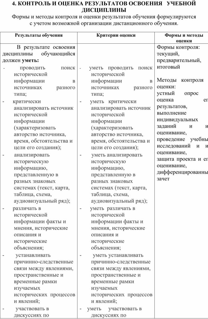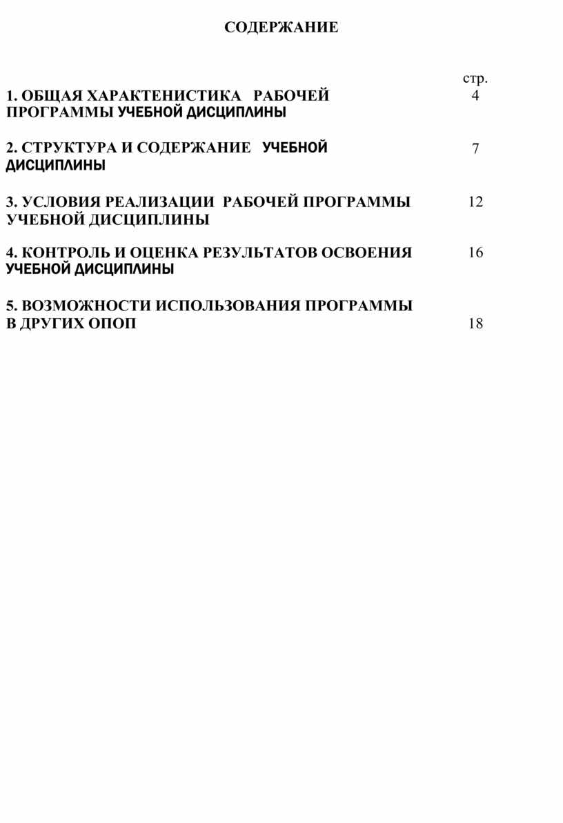 4. КОНТРОЛЬ И ОЦЕНКА РЕЗУЛЬТАТОВ ОСВОЕНИЯ УЧЕБНОЙ ДИСЦИПЛИНЫ5. ВОЗМОЖНОСТИ ИСПОЛЬЗОВАНИЯ ПРОГРАММЫ В ДРУГИХ ОПОП |