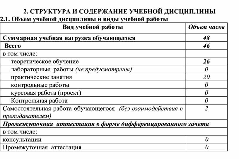 2. СТРУКТУРА И СОДЕРЖАНИЕ УЧЕБНОЙ ДИСЦИПЛИНЫ