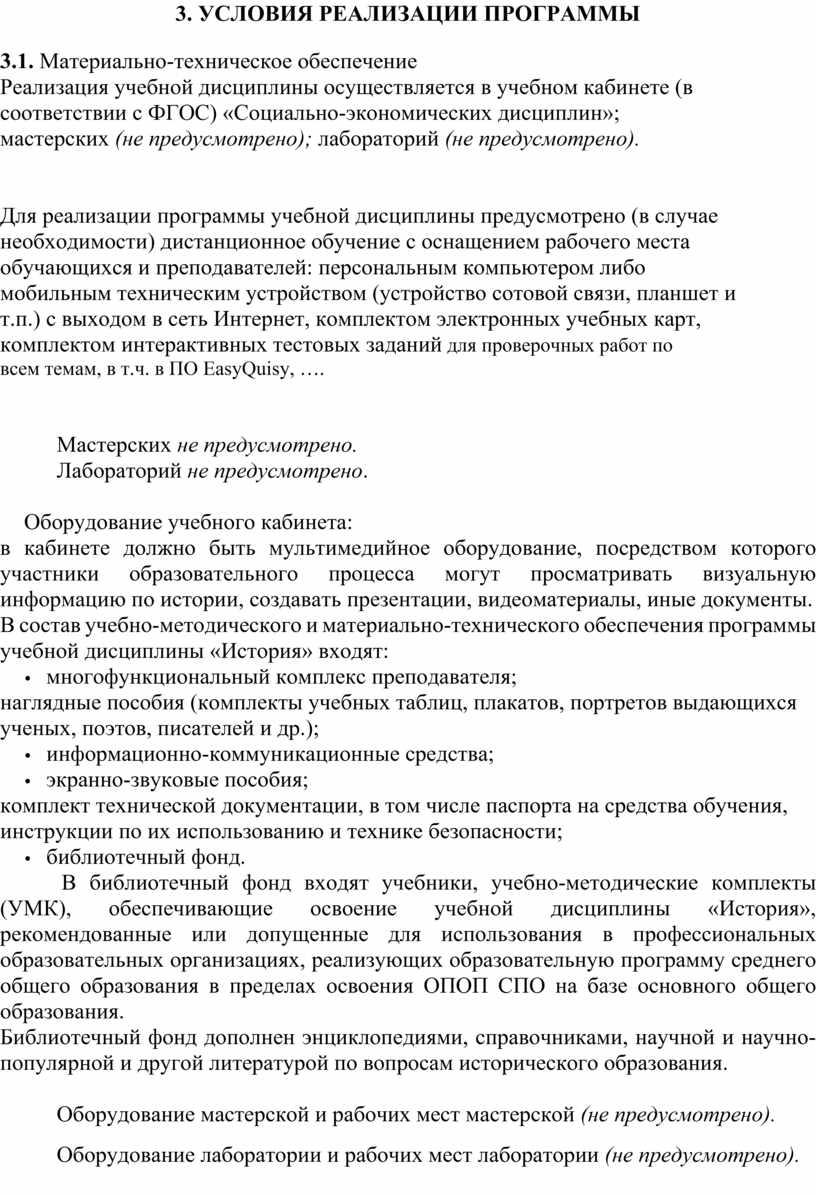 3. УСЛОВИЯ РЕАЛИЗАЦИИ РАБОЧЕЙ ПРОГРАММЫ УЧЕБНОЙ ДИСЦИПЛИНЫ