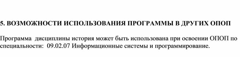5. ВОЗМОЖНОСТИ ИСПОЛЬЗОВАНИЯ ПРОГРАММЫ В ДРУГИХ ОПОП