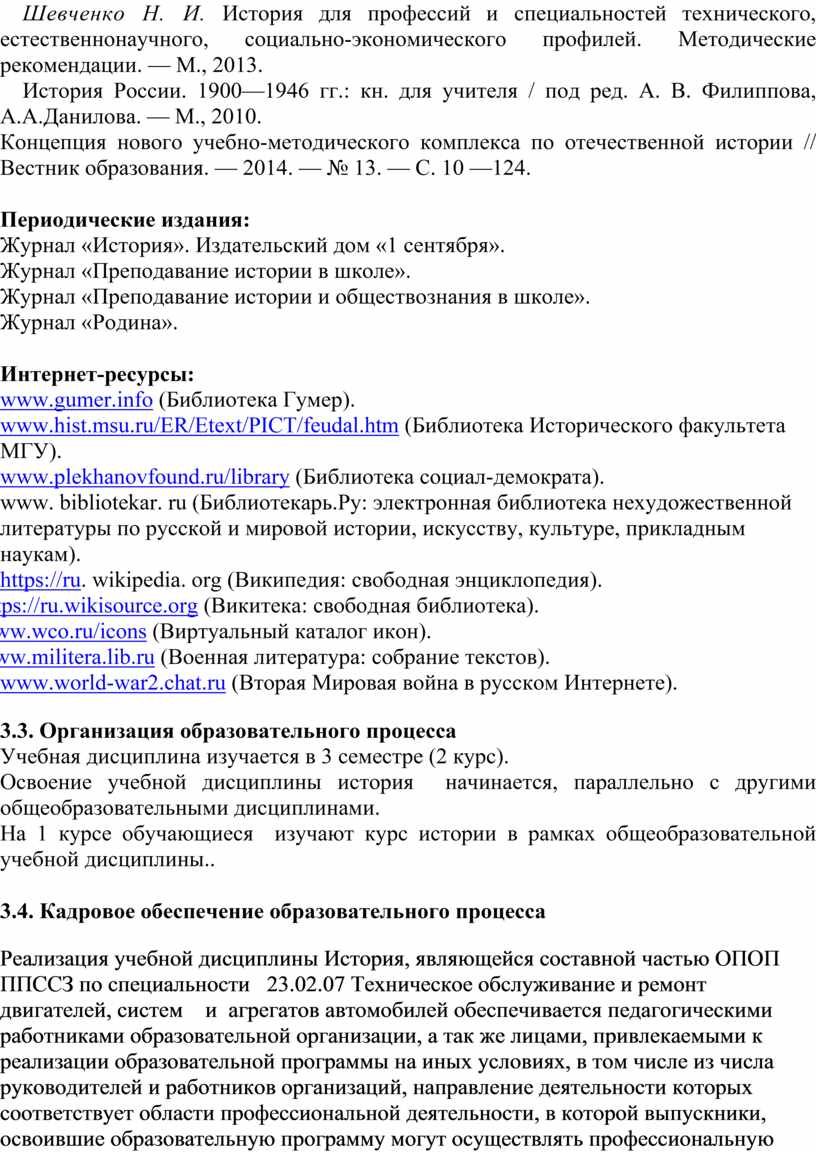 Шевченко Н. И. История для профессий и специальностей технического, естественнонаучного, социально-экономического профилей. Методические рекомендации. — М., 2013.