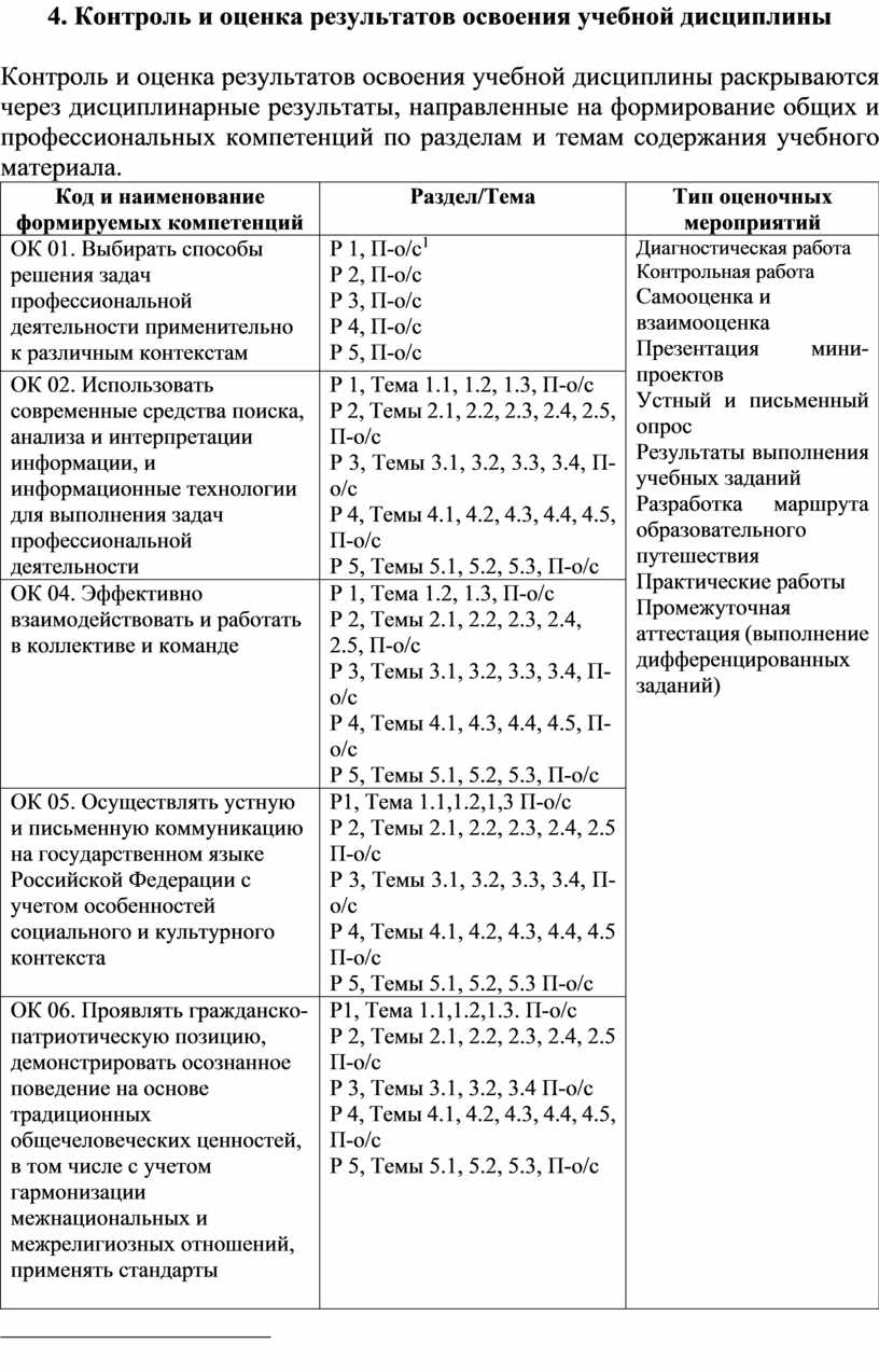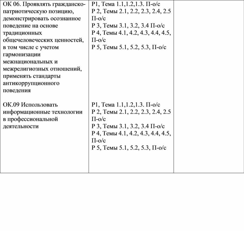 ОК 01, ОК 02, ОК 03, ОК 04, ОК 05, ОК 06, ОК 09 |