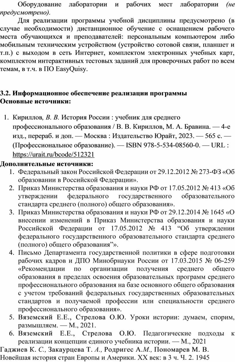 1. Кириллов, В. В. История России : учебник для среднего профессионального образования / В. В. Кириллов, М. А. Бравина. — 4-е изд., перераб. и доп. — Москва : Издательство Юрайт, 2023. — 565 с. — (Профессиональное образование). — ISBN 978-5-534-08560-0. — URL : https://urait.ru/bcode/512321