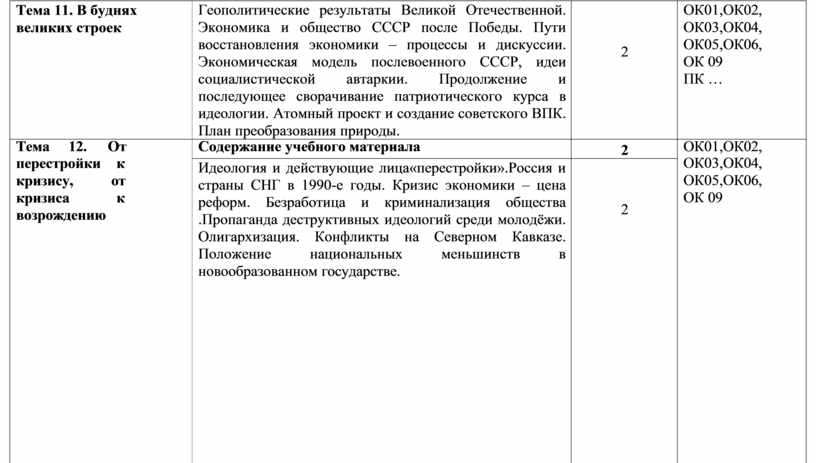 Тема 12. От перестройки к кризису, от кризиса к возрождению |