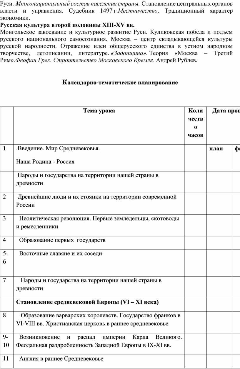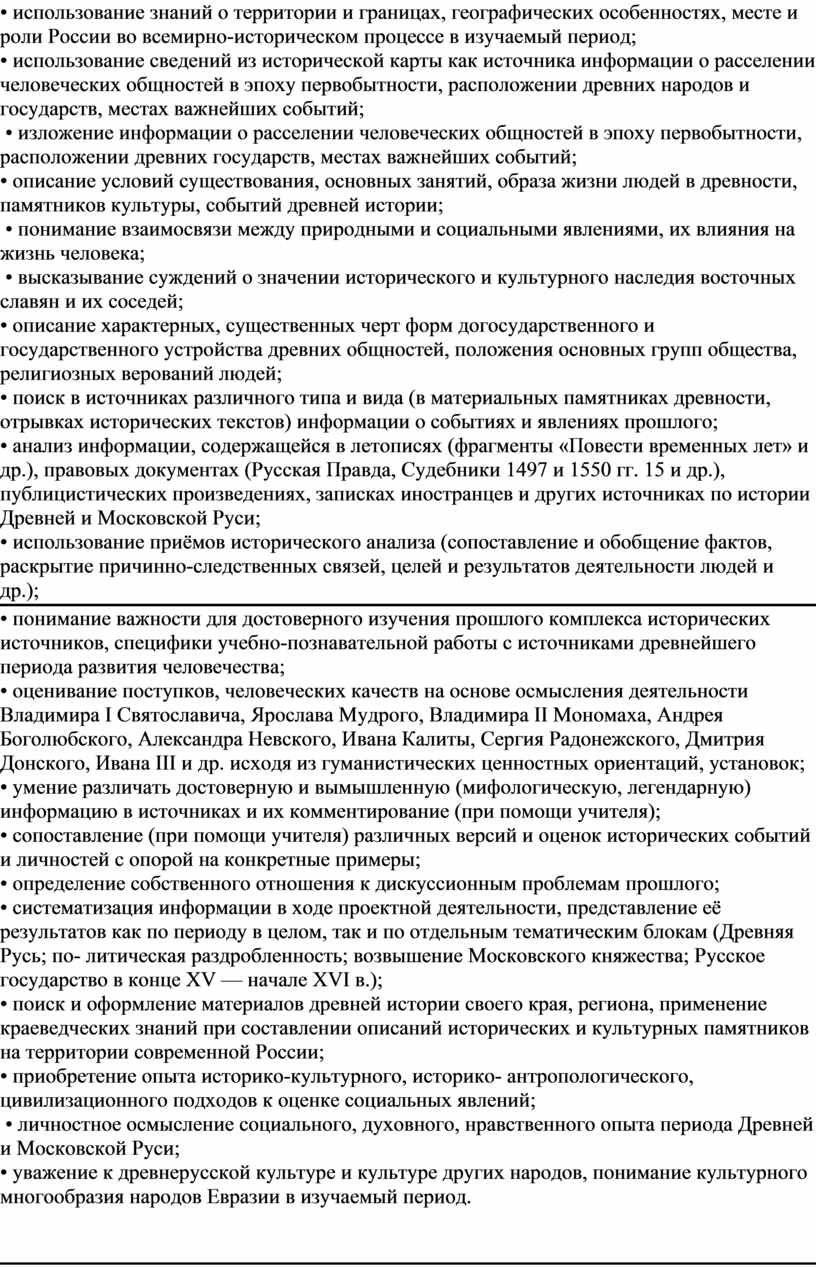 • систематизация информации в ходе проектной деятельности, представление её результатов как по периоду в целом, так и по отдельным тематическим блокам (Древняя Русь; по- литическая раздробленность; возвышение Московского княжества; Русское государство в конце XV — начале XVI в.);