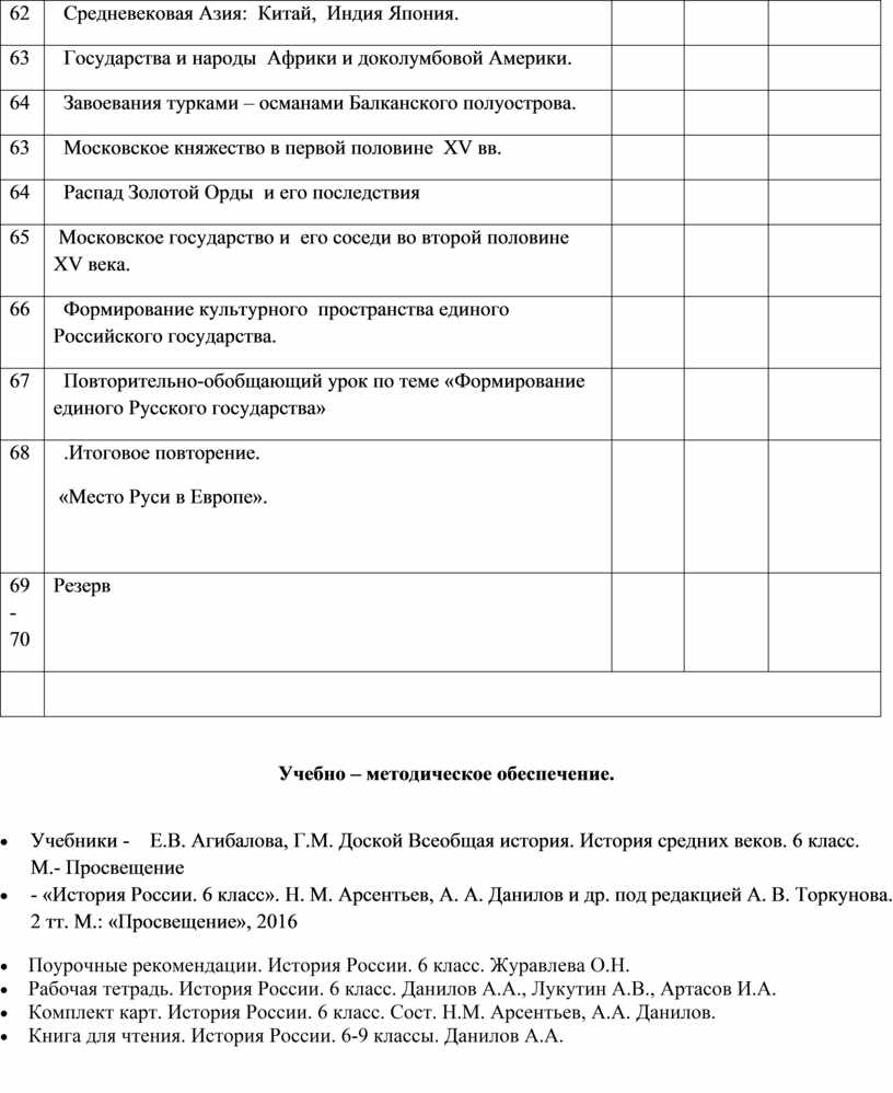 · - «История России. 6 класс». Н. М. Арсентьев, А. А. Данилов и др. под редакцией А. В. Торкунова. 2 тт. М.: «Просвещение», 2016