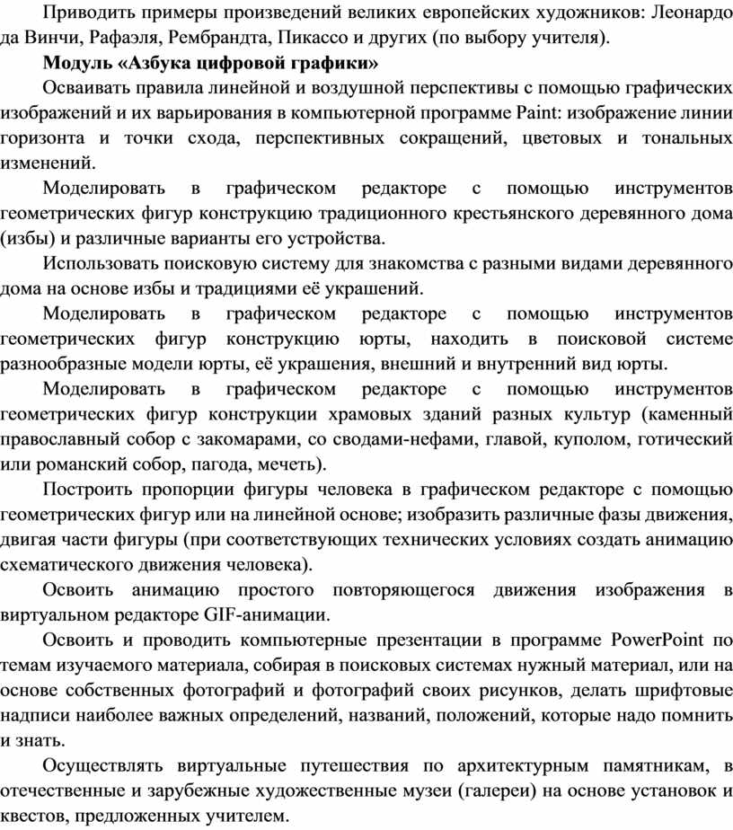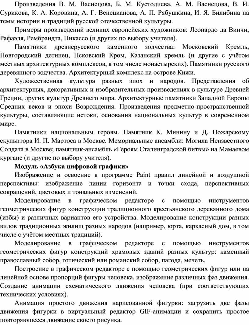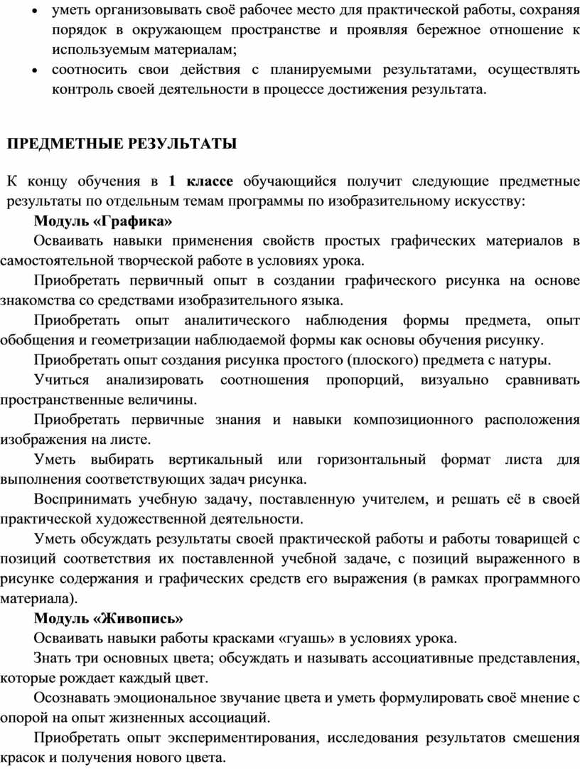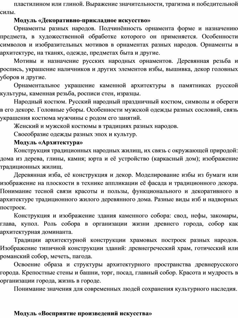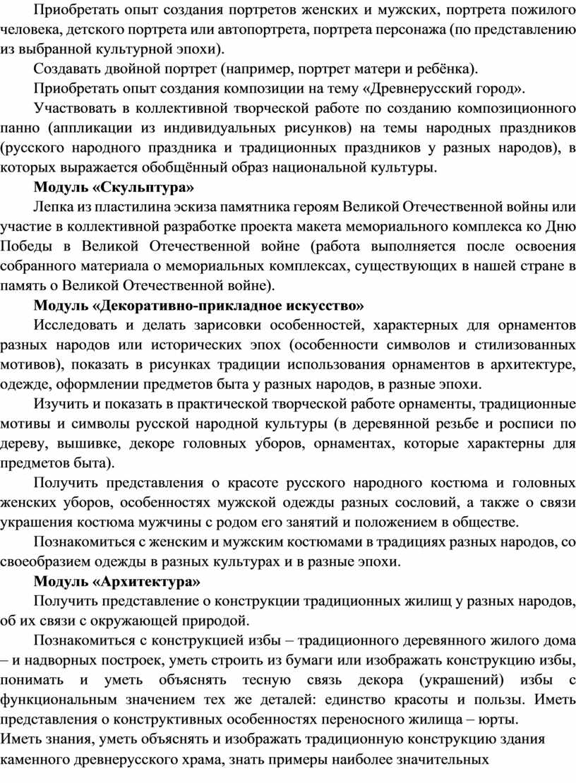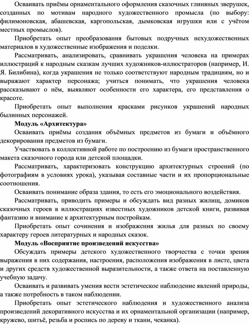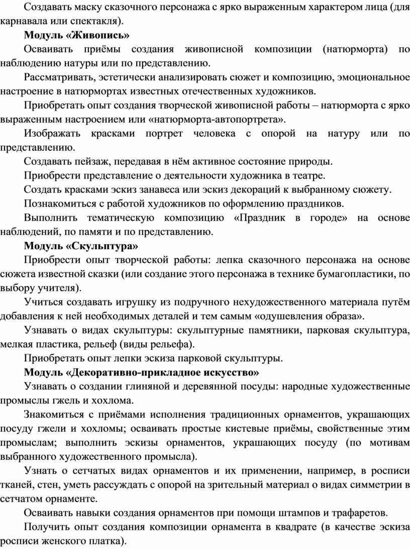 Содержание программы по изобразительному искусству структурировано как система тематических модулей. Изучение содержания всех модулей в 1–4 классах обязательно.