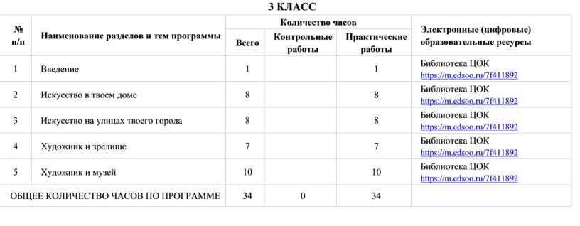в 3 классе – 34 часа (1 час в неделю), в 4 классе – 34 часа (1 час в неделю).