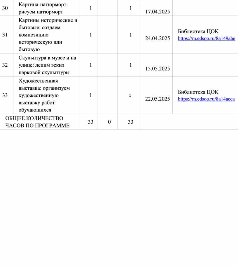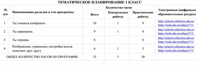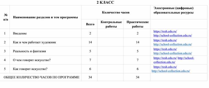 часов, отведённых на изучение изобразительного искусства, составляет 135 часов: