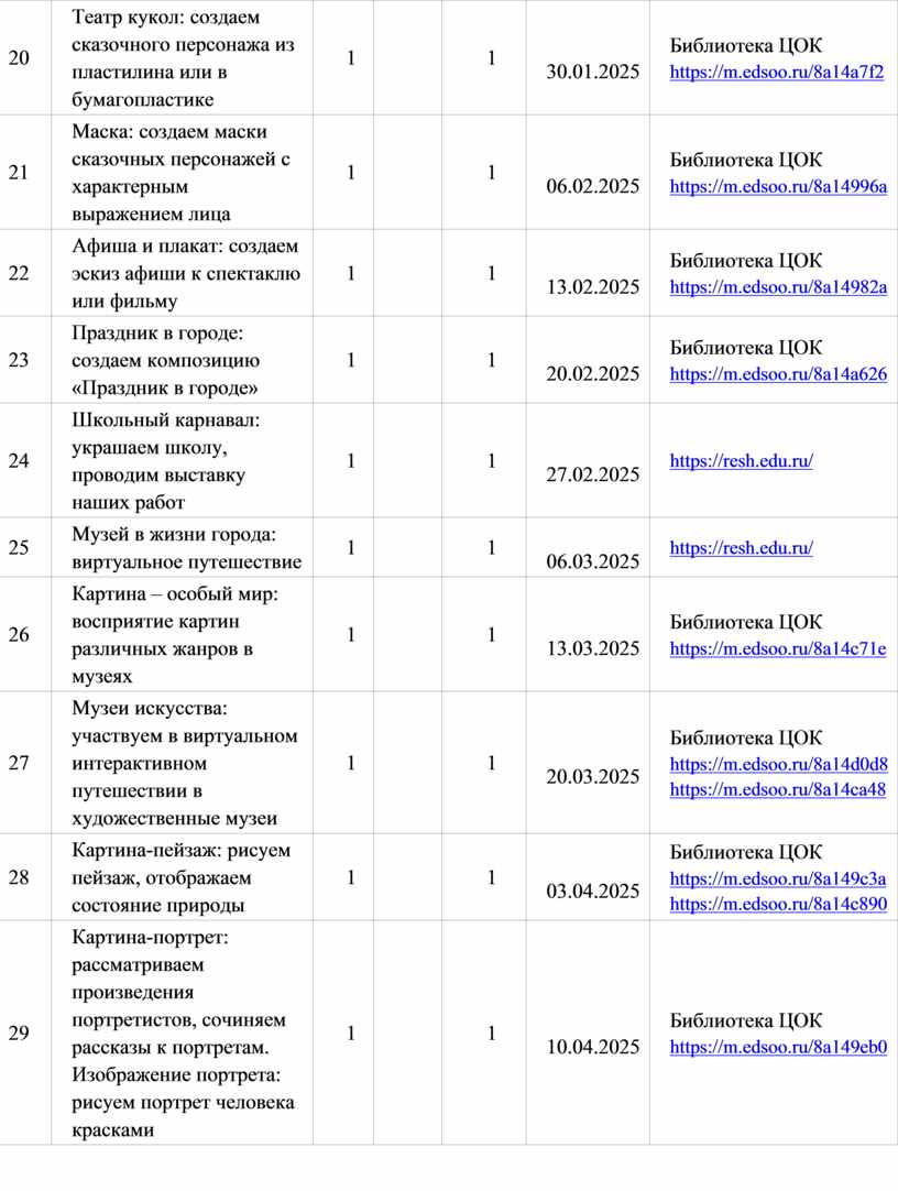 Библиотека ЦОК https://m.edsoo.ru/8a149c3a https://m.edsoo.ru/8a14c890 |