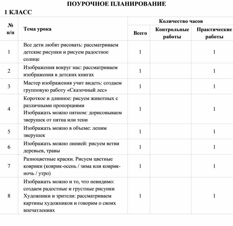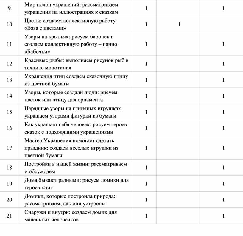 Учебные темы, связанные с восприятием, могут быть реализованы как отдельные уроки, но чаще всего следует объединять задачи восприятия с задачами практической творческой работы (при сохранении учебного времени на восприятие произведений искусства и эстетического наблюдения окружающей действительности).