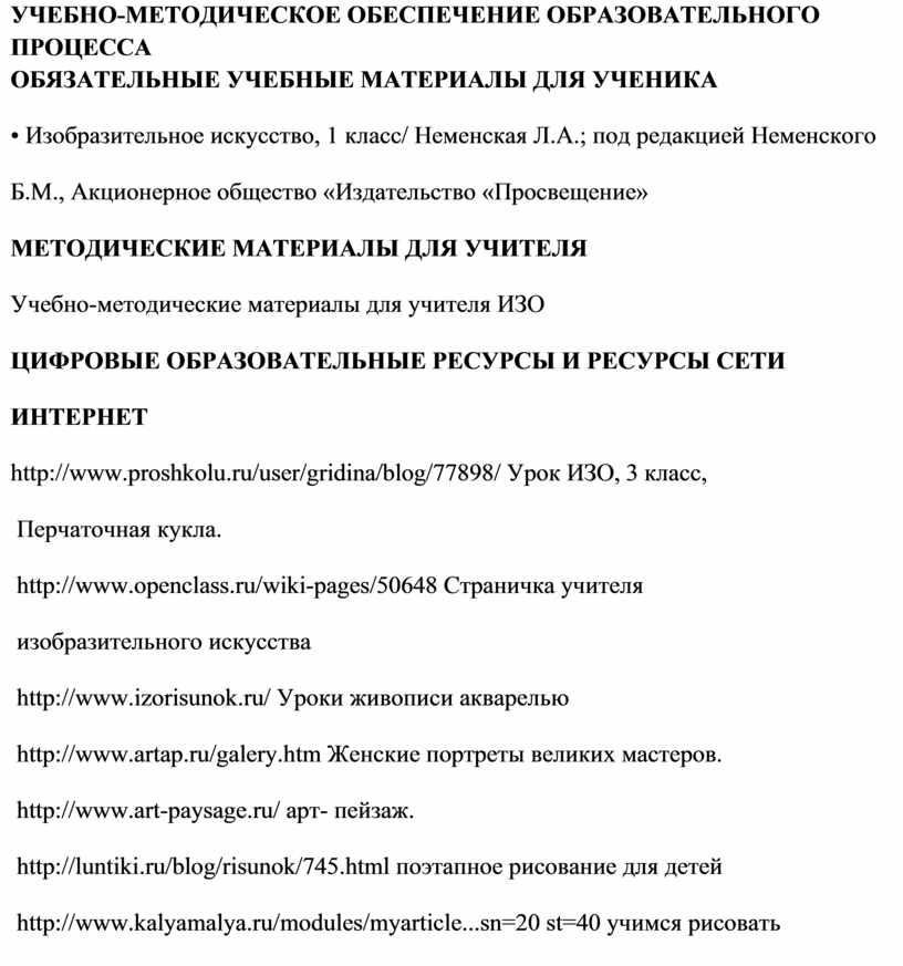 Учебно-методические материалы для учителя ИЗО