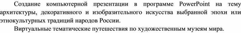 Многообразие художественных культур в мире: создаем презентацию на тему архитектуры, искусства выбранной эпохи или этнокультурных традиций народов России |