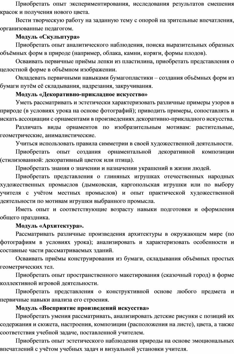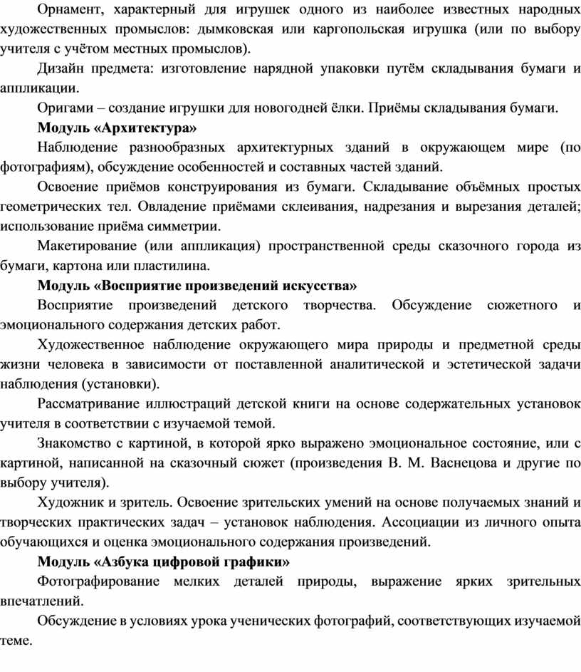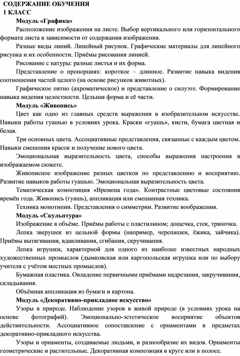 Содержание программы по изобразительному искусству структурировано как система тематических модулей. Изучение содержания всех модулей в 1–4 классах обязательно.