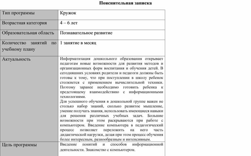 1. Познакомить детей с компьютером, как современным инструментом информационной деятельности; 2. Познакомить детей с правилами безопасной работы на компьютере; 3. Формировать начальные навыки работы на компьютере; 4. Приобщать к сопереживанию, сотрудничеству, сотворчеству; 5. Развивать конструктивные способности, тренировать память, внимание, развивать воображение; 6. Развивать творческое, понятийно-образное, логическое, абстрактное мышление. |