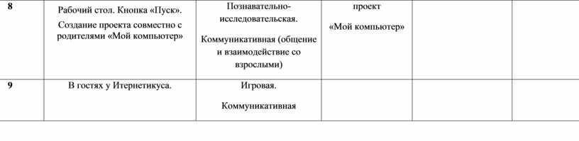 Рабочий стол. Кнопка «Пуск». Создание проекта совместно с родителями «Мой компьютер» |