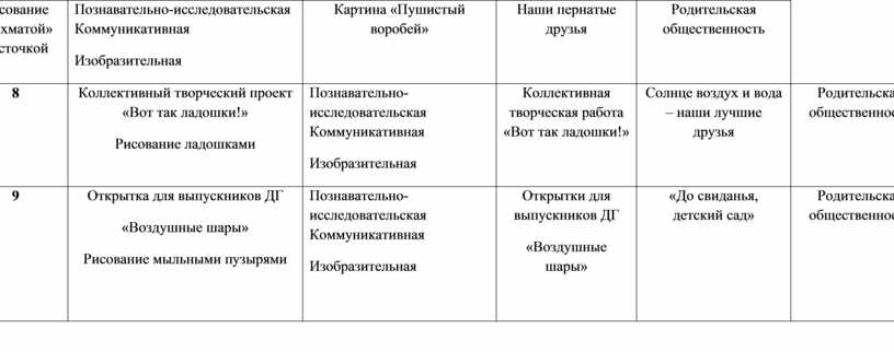 Познавательно-исследовательская Коммуникативная Изобразительная |