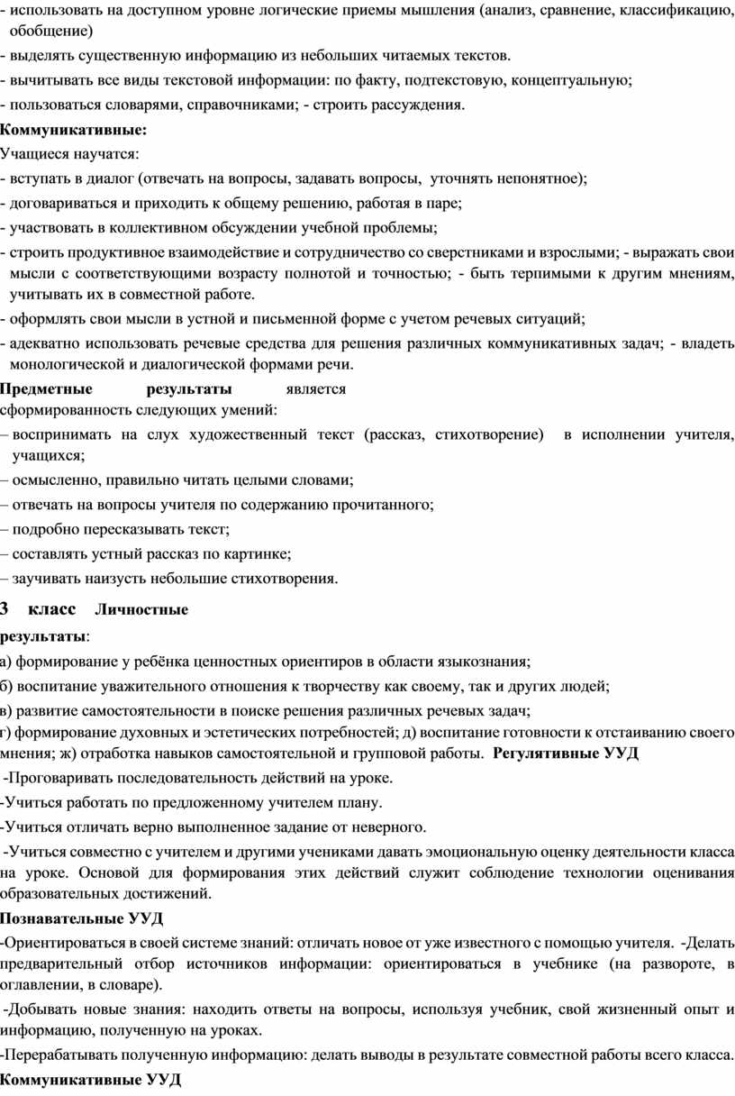 3 класс Личностные результаты: