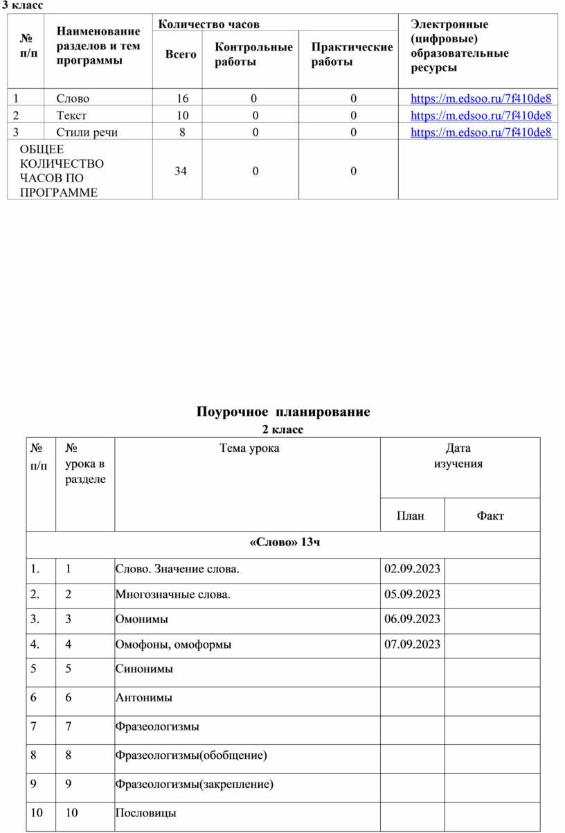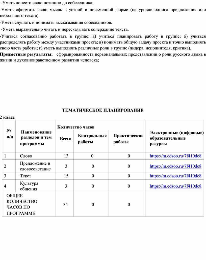 Программа курса «Развитие речи» рассчитана на 1 час в неделю, что составляет 34 часа во 2 и 3 классах.