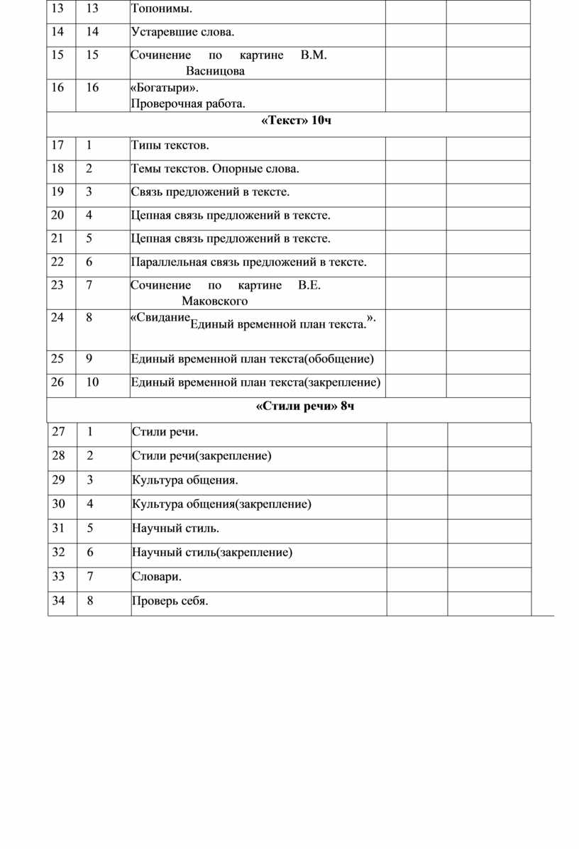 Тема, микротема, основная мысль текста. Опорные слова. Структура текста. План, виды плана.Стили речи: разговорный и книжный( художественный и научный).