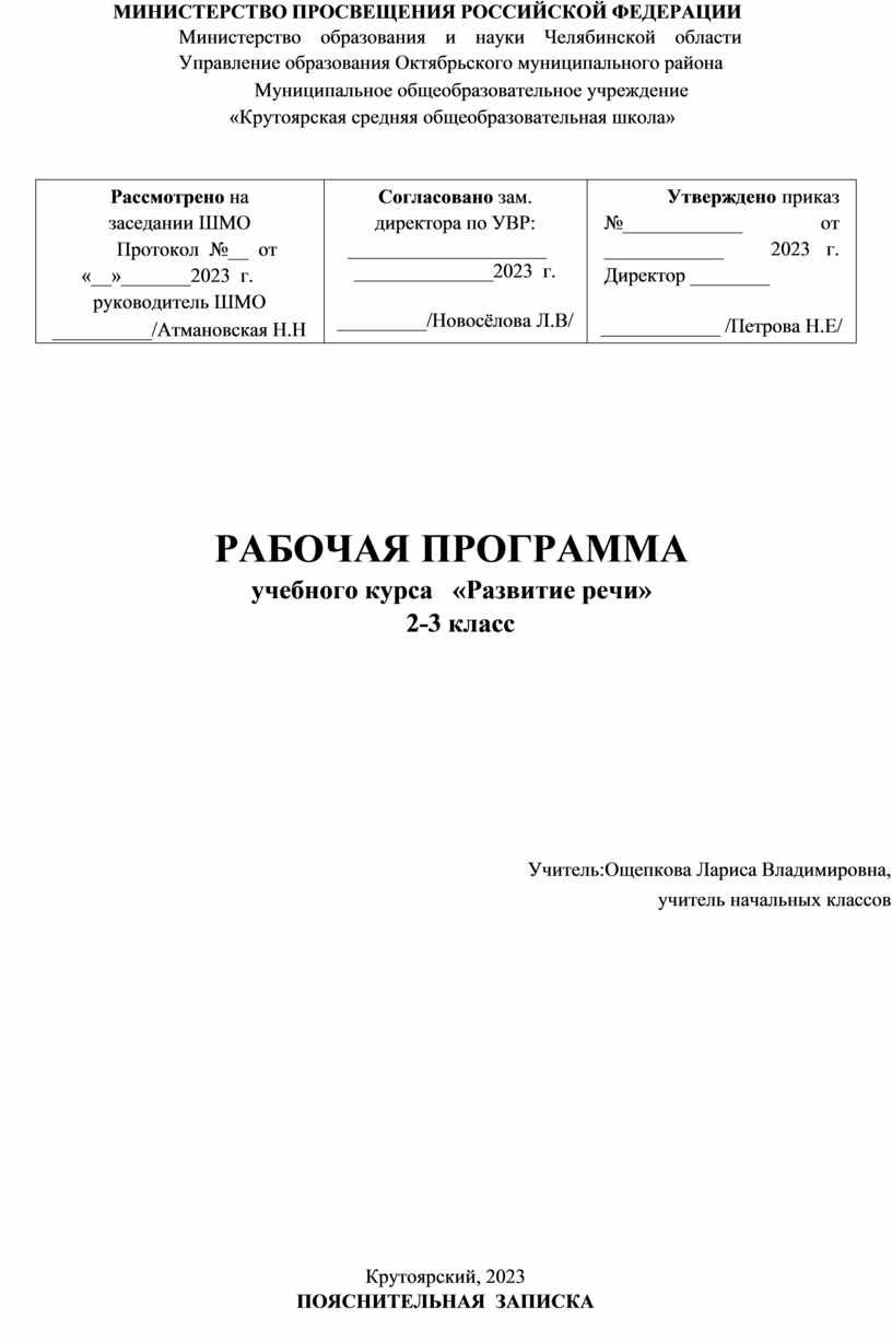 Согласовано зам. директора по УВР: ____________________ ______________2023 г.