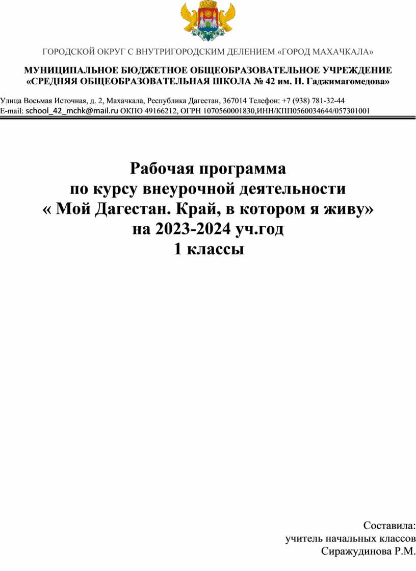 МУНИЦИПАЛЬНОЕ БЮДЖЕТНОЕ ОБЩЕОБРАЗОВАТЕЛЬНОЕ УЧРЕЖДЕНИЕ «СРЕДНЯЯ ОБЩЕОБРАЗОВАТЕЛЬНАЯ ШКОЛА № 42 им. Н. Гаджимагомедова»