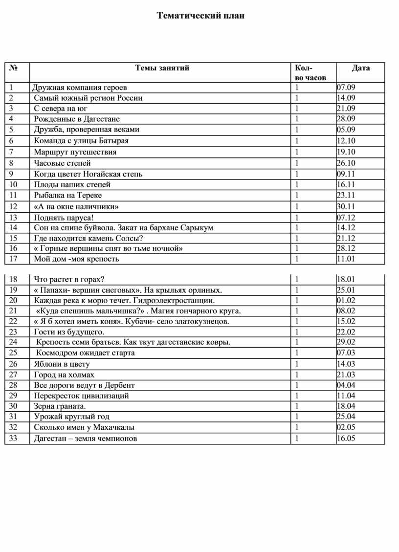 Содержание курса «Мой Дагестан .Край в котором я живу.»