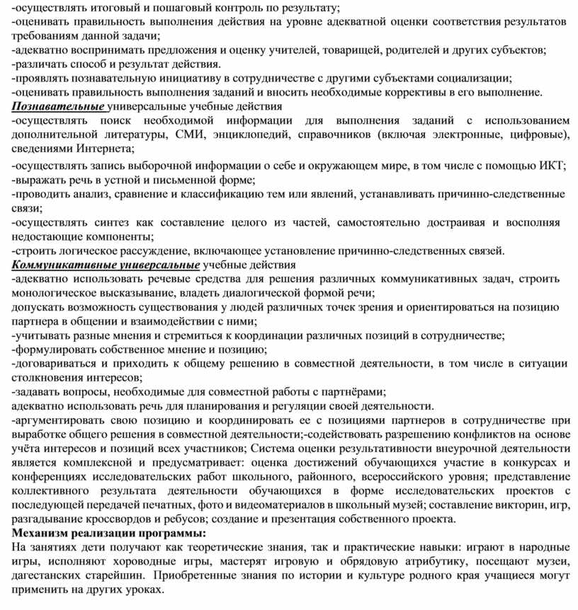 В результате освоения содержания программы у учащихся предполагается формирование универсальных учебных действий (личностных, регулятивных, познавательных, коммуникативных), позволяющих достигать предметных, метапредметных и личностных результатов.