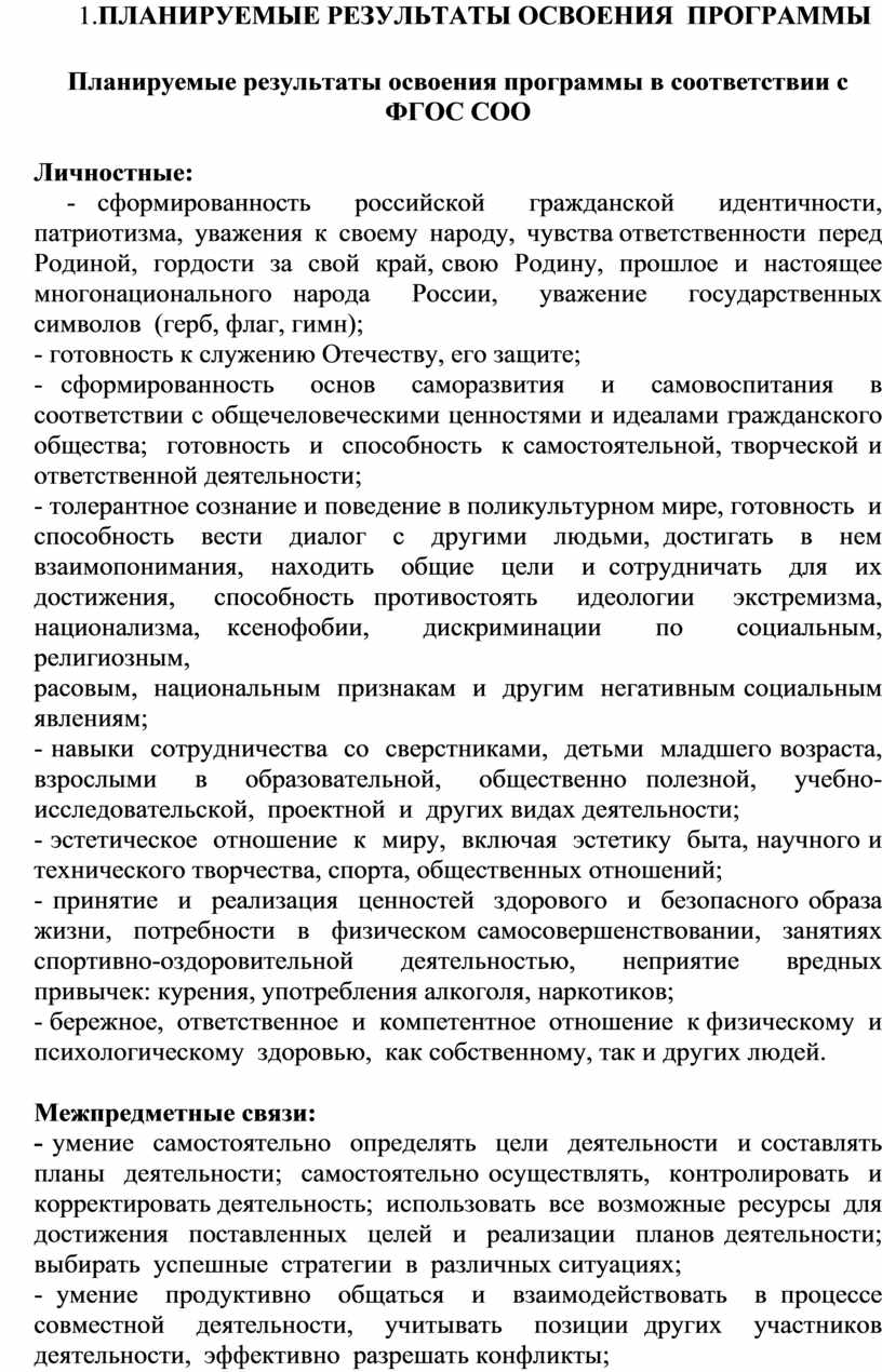1.ПЛАНИРУЕМЫЕ РЕЗУЛЬТАТЫ ОСВОЕНИЯ ПРОГРАММЫ