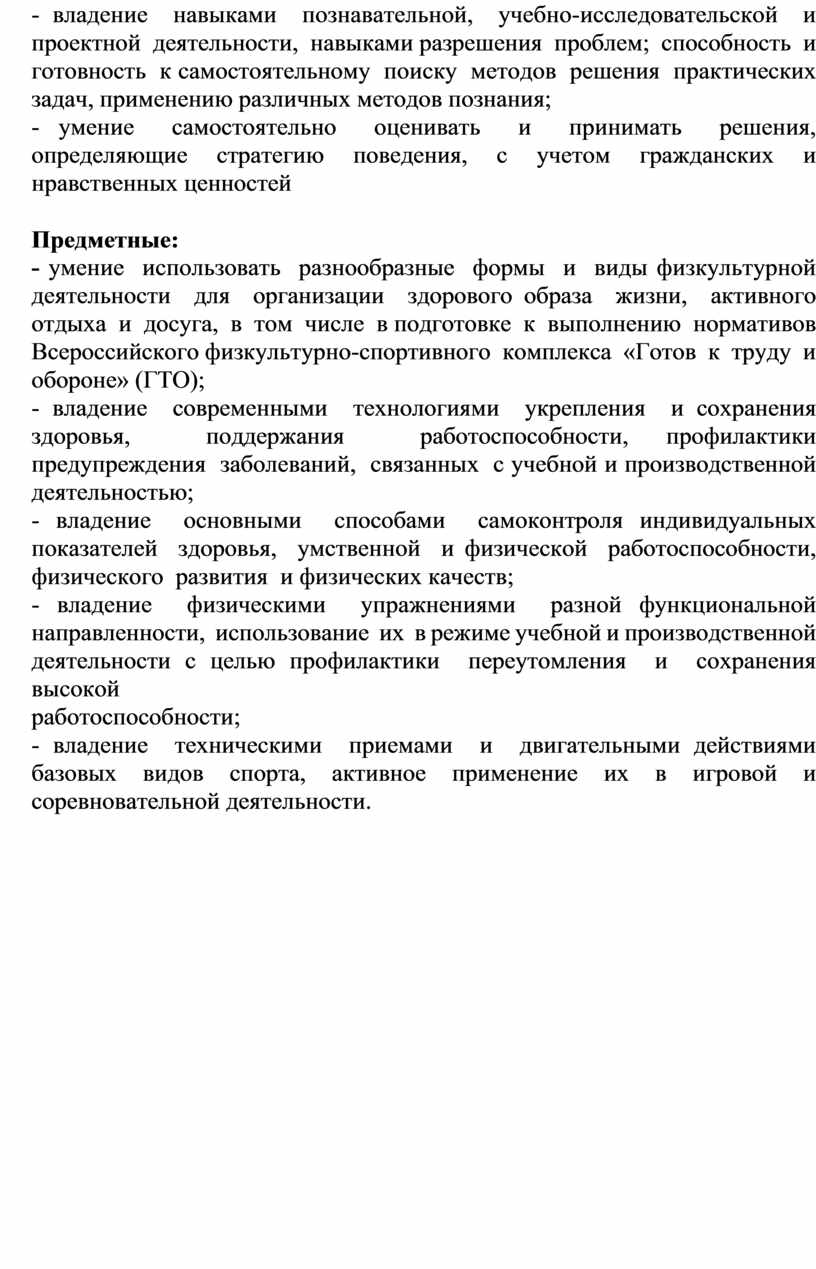 - умение использовать разнообразные формы и виды физкультурной деятельности для организации здорового образа жизни, активного отдыха и досуга, в том числе в подготовке к выполнению нормативов Всероссийского физкультурно-спортивного комплекса «Готов к труду и обороне» (ГТО);