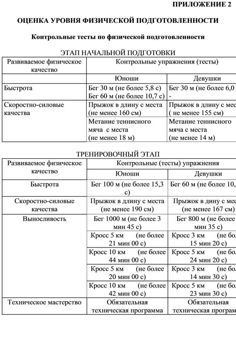 ПРИЛОЖЕНИЕ 2.ОЦЕНКА УРОВНЯ ФИЗИЧЕСКОЙ ПОДГОТОВЛЕННОСТИ 19