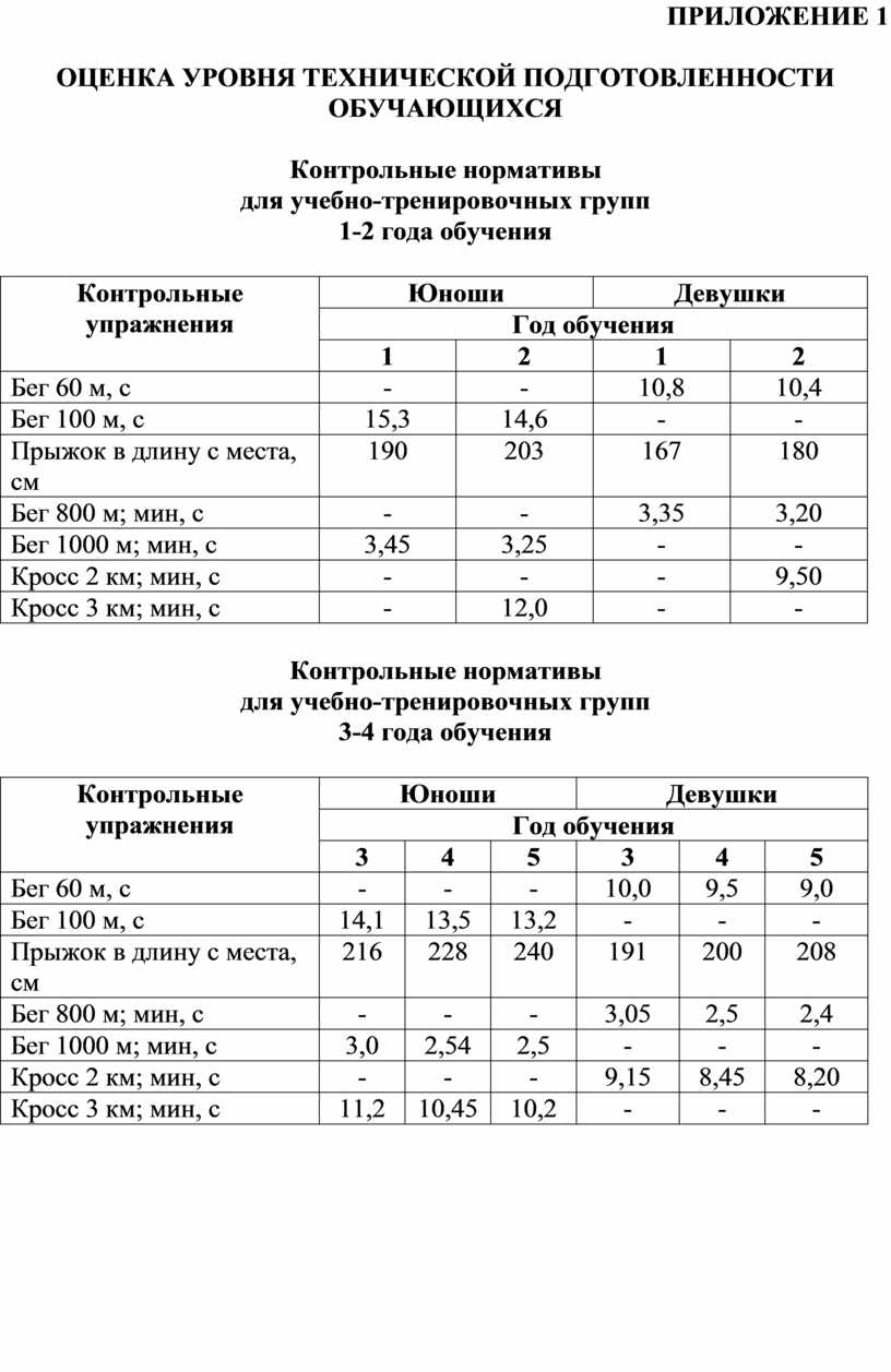 ПРИЛОЖЕНИЕ 1. ОЦЕНКА УРОВНЯ ТЕХНИЧЕСКОЙ ПОДГОТОВЛЕННОСТИ ОБУЧАЮЩИХСЯ 18