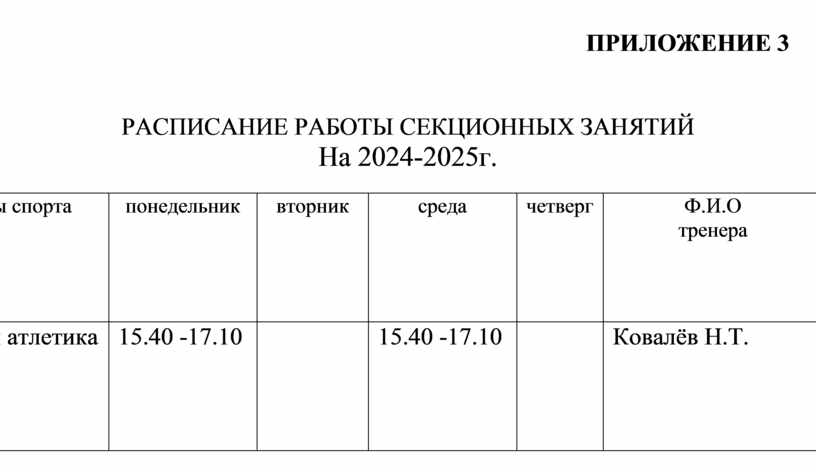 ПРИЛОЖЕНИЕ 3. РАСПИСАНИЕ РАБОТЫ СЕКЦИОННЫХ ЗАНЯТИЙ 21