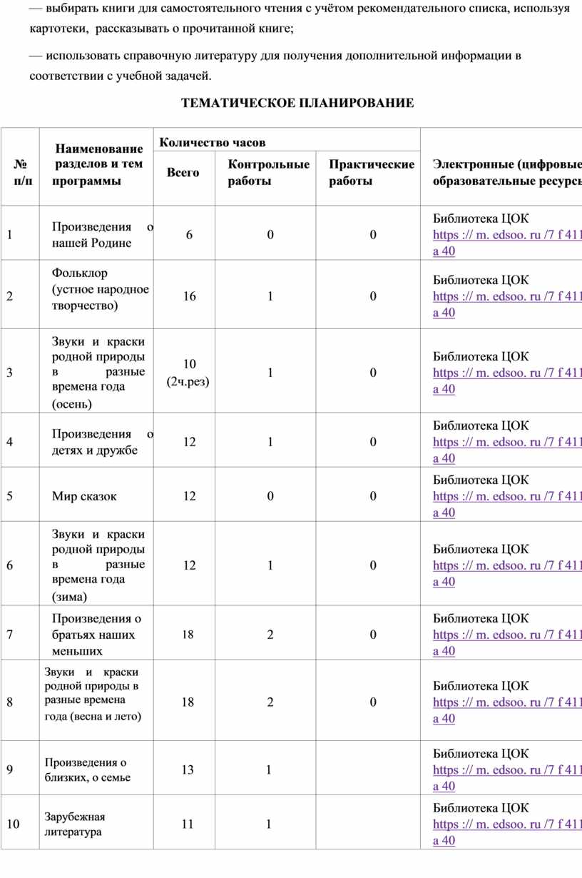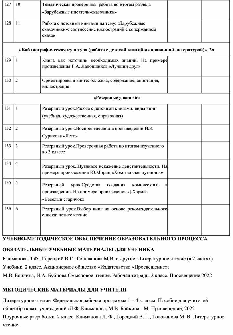 На курс «Литературное чтение» во 2 классе отводится 136 ч. Припреподавании предмета используется УМК «Школа России»