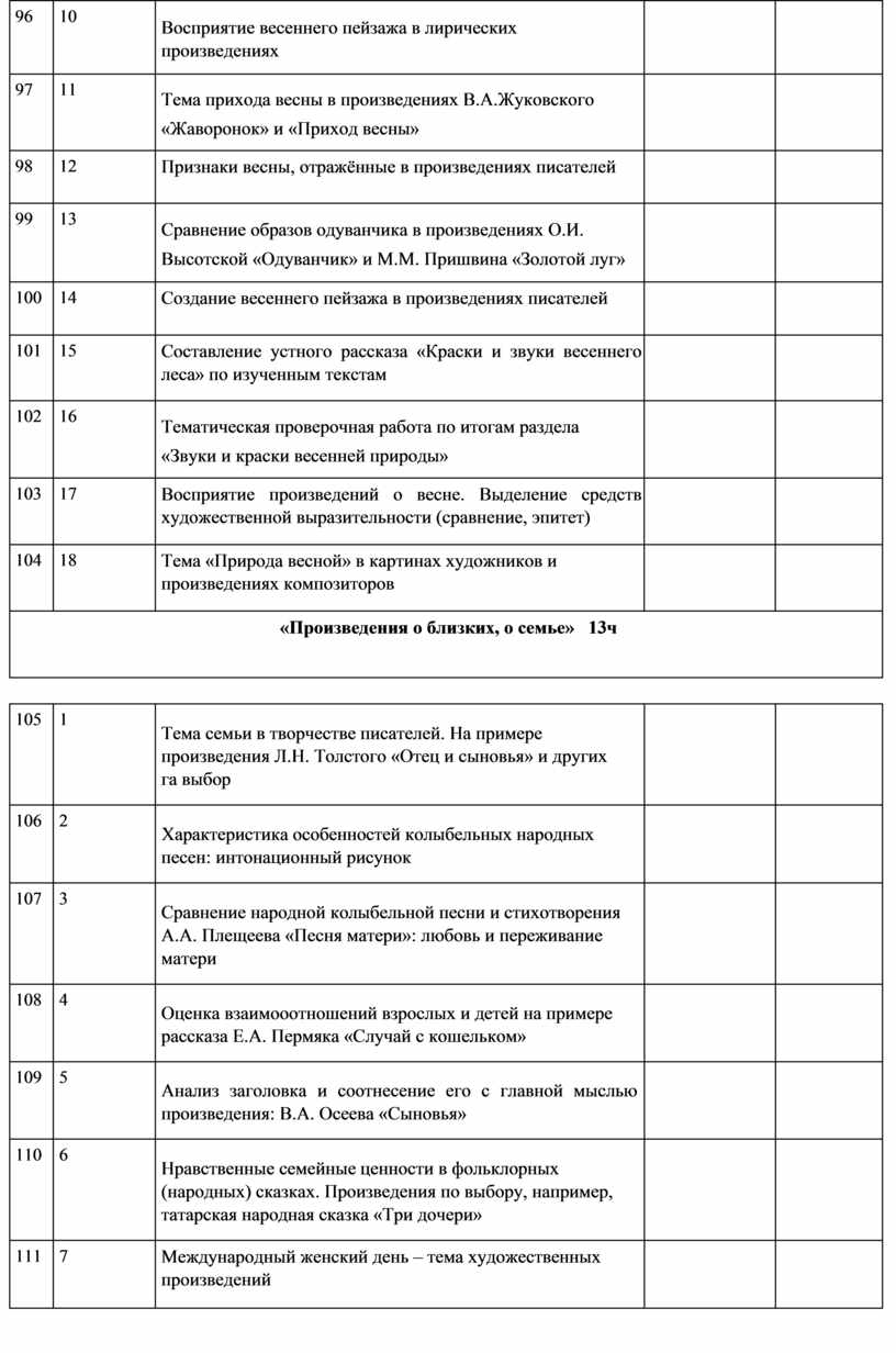 О наших близких, о семье. Тема семьи, детства, взаимоотношений взрослых и детей в творчестве писателей и фольклорных произведениях (по выбору). Отражение нравственных семейных ценностей в произведениях о семье: любовь и сопереживание, уважение и внимание к старшему поколению, радость общения и защищённость в семье. Тема художественных произведений: Международный женский день, День Победы.