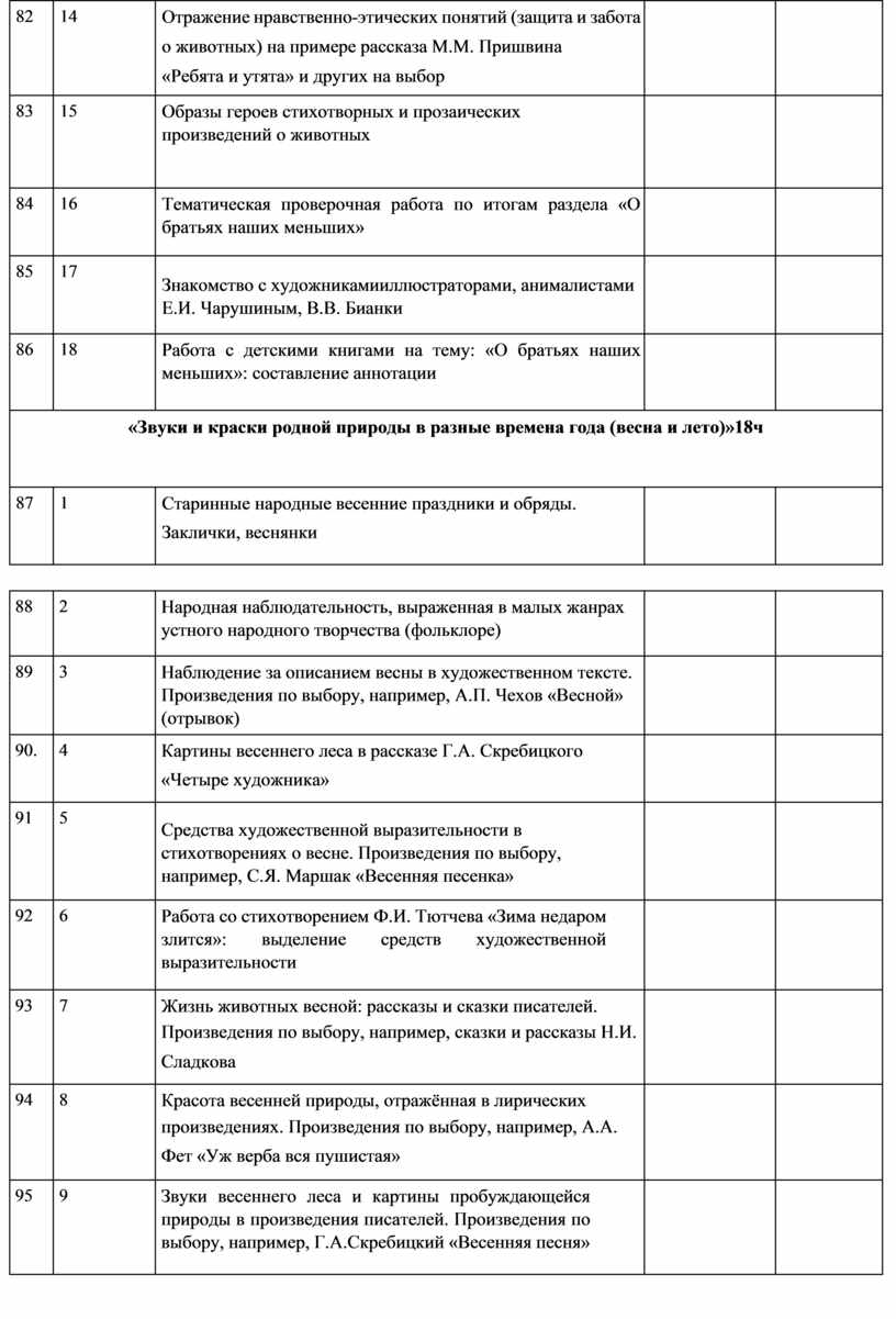 Звуки весеннего леса и картины пробуждающейся природы в произведения писателей. Произведения по выбору, например, Г.А.Скребицкий «Весенняя песня» |