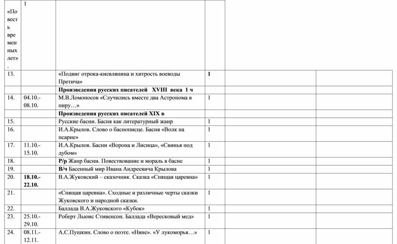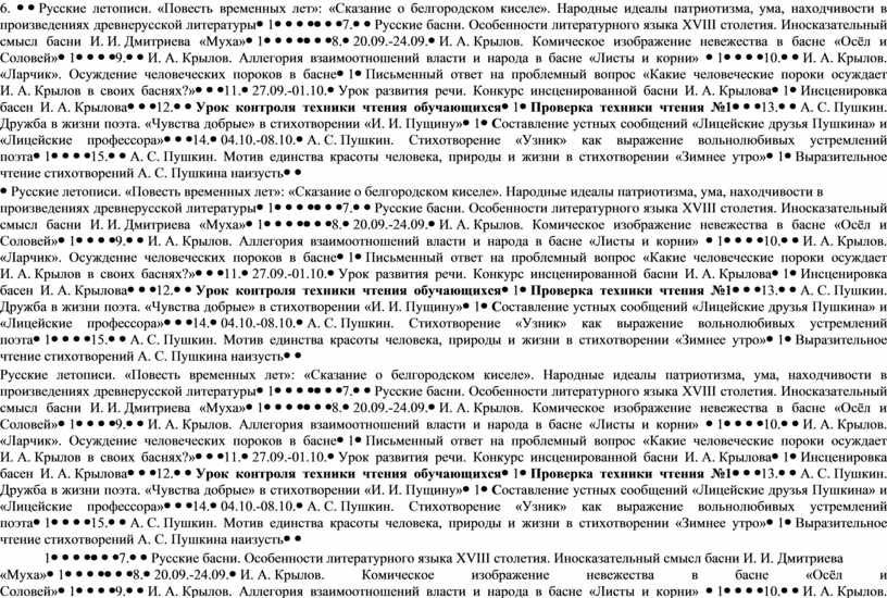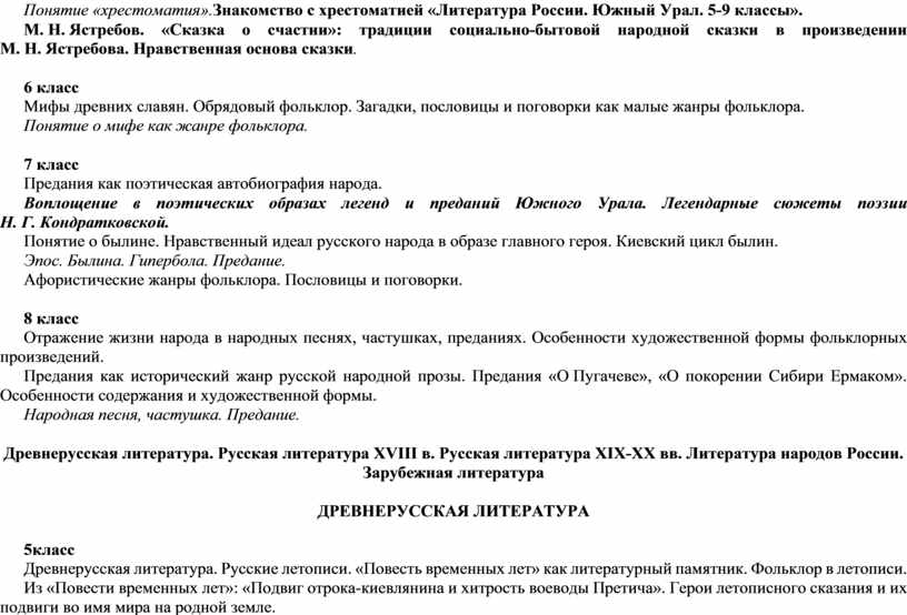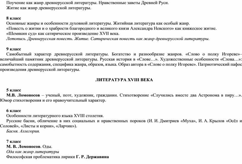Древнерусская литература. Русская литература XVIII в. Русская литература XIX-XX вв. Литература народов России. Зарубежная литература |